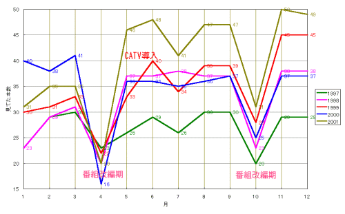 もうちょっと古いデータも欲しいなぁ。かつてのビデオ録りの計画表がどっかにあったはずだけど…。
