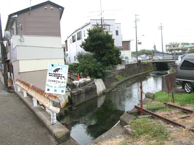 んで神尾さんち周辺。思いのほか狭い路地でした。強風で堤防の上に乗るのが怖ぇ。