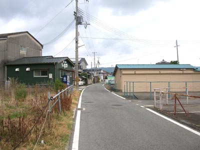そこから南西に。左の原っぱにあるはずの土管(マンホール?)がどうしても見当たらず。埋まった? あと左側の奥にあった建物がペンキ塗り替えして、劇中とだいぶ雰囲気が変わっていた感じ。上の鉄橋もそうだけど、巡礼って時間との勝負なところがあるようですねー。まぁ早々に行くと先駆者がいないので、場所がわからないわけですが…。