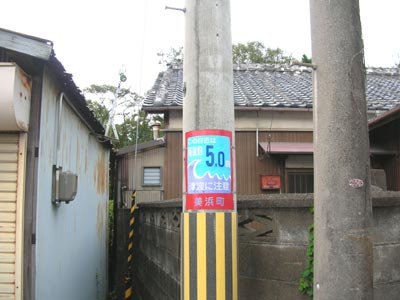 ちなみに隣の御坊市だと、海抜標識のデザインが違います。
