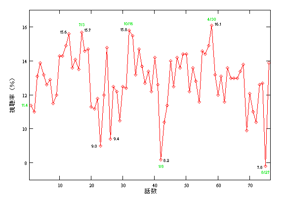 - 一目で視聴率の変化がわかる視聴率グラフを作ってみました。